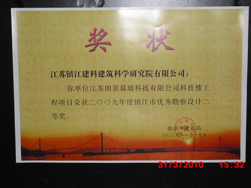 [榮譽]2009年度鎮(zhèn)江市優(yōu)秀勘察設(shè)計二等獎