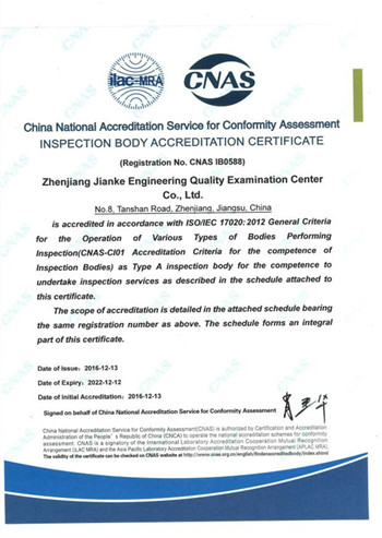 近日,本中心順利通過中國合格評定國家認(rèn)可委員會初次評審,經(jīng)認(rèn)可評定,本中心符合ISO/IEC 17020:2012《各類檢驗(yàn)機(jī)構(gòu)運(yùn)行的基本準(zhǔn)則》(CNAS-CI01《檢驗(yàn)機(jī)構(gòu)能力認(rèn)可準(zhǔn)則》)A類的要求,具備承擔(dān)申報(bào)參數(shù)內(nèi)的檢驗(yàn)服務(wù)的能力。自2016年12月13日起,允許使用ILAC-MRA/CNAS標(biāo)識和聲明認(rèn)可狀態(tài)。