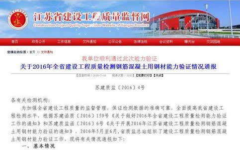 為加強全省建設(shè)工程質(zhì)量的監(jiān)督管理,保證檢測數(shù)據(jù)的準(zhǔn)確可靠,全面提高我省建設(shè)工程檢測水平,2016年5月至6月,省質(zhì)監(jiān)總站組織了建設(shè)工程質(zhì)量檢測鋼筋混凝土用鋼材能力驗證工作,我單位檢測一科按照規(guī)定參加了此次能力驗證,并且順利通過了此次驗證。