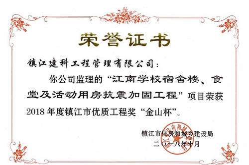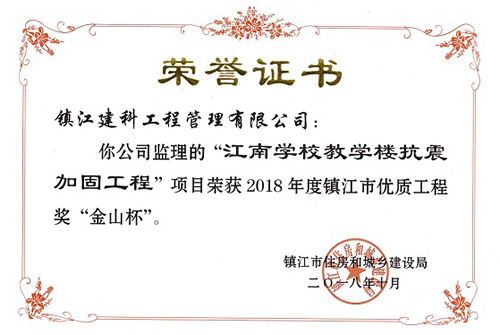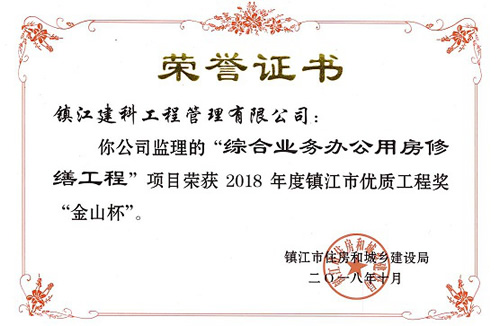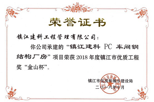 祝賀管理公司2018年度8個(gè)項(xiàng)目榮獲鎮(zhèn)江市優(yōu)“金山杯”獎(jiǎng),本年度獲獎(jiǎng)項(xiàng)目涵蓋房屋建筑工程、市政公用工程、裝飾工程、鋼結(jié)構(gòu)工程。其中管理公司首次開(kāi)展施工總承包的“鎮(zhèn)江建科PC車(chē)間廠房”項(xiàng)目也榮獲了市優(yōu)安裝類(lèi)鋼結(jié)構(gòu)專(zhuān)業(yè)“金山杯”獎(jiǎng)項(xiàng)。榮譽(yù)取得的同時(shí),管理公司將進(jìn)一步工程建設(shè)管理,提高工程管理水平,為我市住建事業(yè)發(fā)展作出新的貢獻(xiàn)。