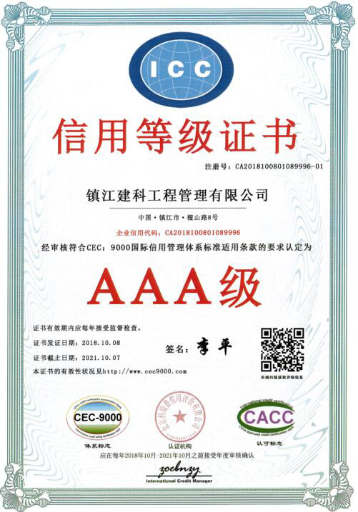 祝賀建科管理公司通過ICC 3A級信用等級認(rèn)證!