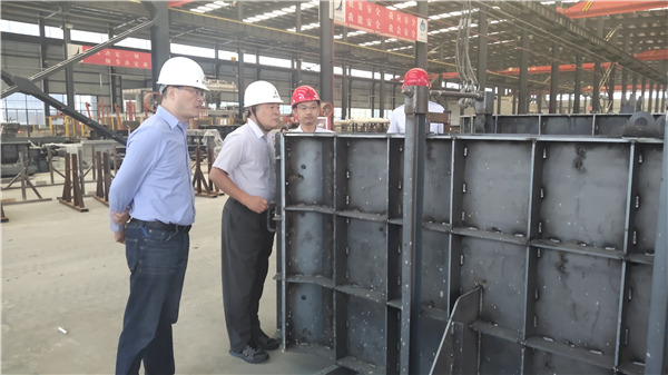 2019年5月30日下午,原市人大副主任,現(xiàn)市建筑行業(yè)協(xié)會名譽會長鄂金書、協(xié)會會長王以進專程到本集團位于丹徒高資鎮(zhèn)的建筑產(chǎn)業(yè)化生產(chǎn)基地實地考察。集團董事長伊立、建科科技公司總經(jīng)理陸小軍匯報了基地建設和目前生產(chǎn)經(jīng)營運作情況,鄂主任等深入生產(chǎn)車間、調度控制室邊走邊看邊詢問,仔細地了解生產(chǎn)預制構件的品種、生產(chǎn)工藝的流程以及質量管控的手段。鄂主任對基地下一步擴建的規(guī)劃、成品的合理堆放,及時科學調度發(fā)貨、模具的自行開發(fā)生產(chǎn)等相關工作提出了指導性建議。