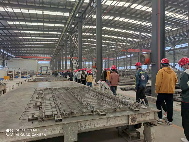 師生們參觀了建科科技公司預(yù)制構(gòu)件生產(chǎn)車間流水生產(chǎn)線、固定生產(chǎn)線和鋼筋生產(chǎn)線,科技公司副總經(jīng)理朱祥介紹了預(yù)制構(gòu)件生產(chǎn)的工藝流程,同時對同學(xué)們的踴躍提問一一做出了解答。在參觀過程中,同學(xué)們感嘆,這與他們想象的建筑行業(yè)完全不一樣,改變了他們對建筑行業(yè)臟亂差的刻板印象。參觀結(jié)束后,我們與學(xué)校師生從深化設(shè)計(jì)、構(gòu)件制造到最后的安裝施工等各個環(huán)節(jié)進(jìn)行了熱烈的討論。同學(xué)們表示從未想過建筑業(yè)會像他們看到的一樣,在工廠預(yù)制,在現(xiàn)場拼裝。大家表現(xiàn)出了濃厚的興趣,紛紛表示將來會投身于建筑行業(yè)之中。