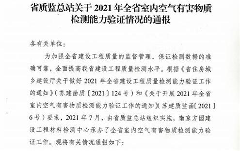 2021年7月,檢測中心參加了由江蘇省建設(shè)工程質(zhì)量監(jiān)督站組織的“室內(nèi)空氣有害物質(zhì)(甲醛)AHMT分光光度法”能力驗(yàn)證,提交的檢測結(jié)果評價為“滿意”。