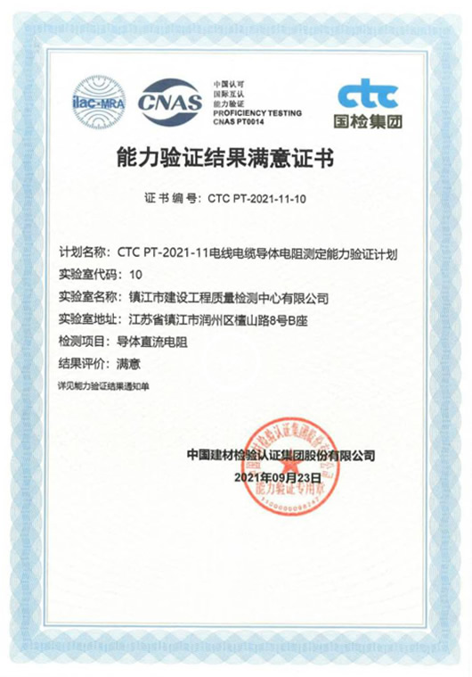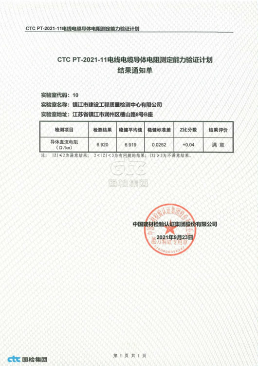 此次能力驗證的順利通過,充分體現(xiàn)了我中心質(zhì)量控制體系運行有效,在電線電纜檢測項目中導(dǎo)體直流電阻的檢測方面具有良好的技術(shù)能力。
