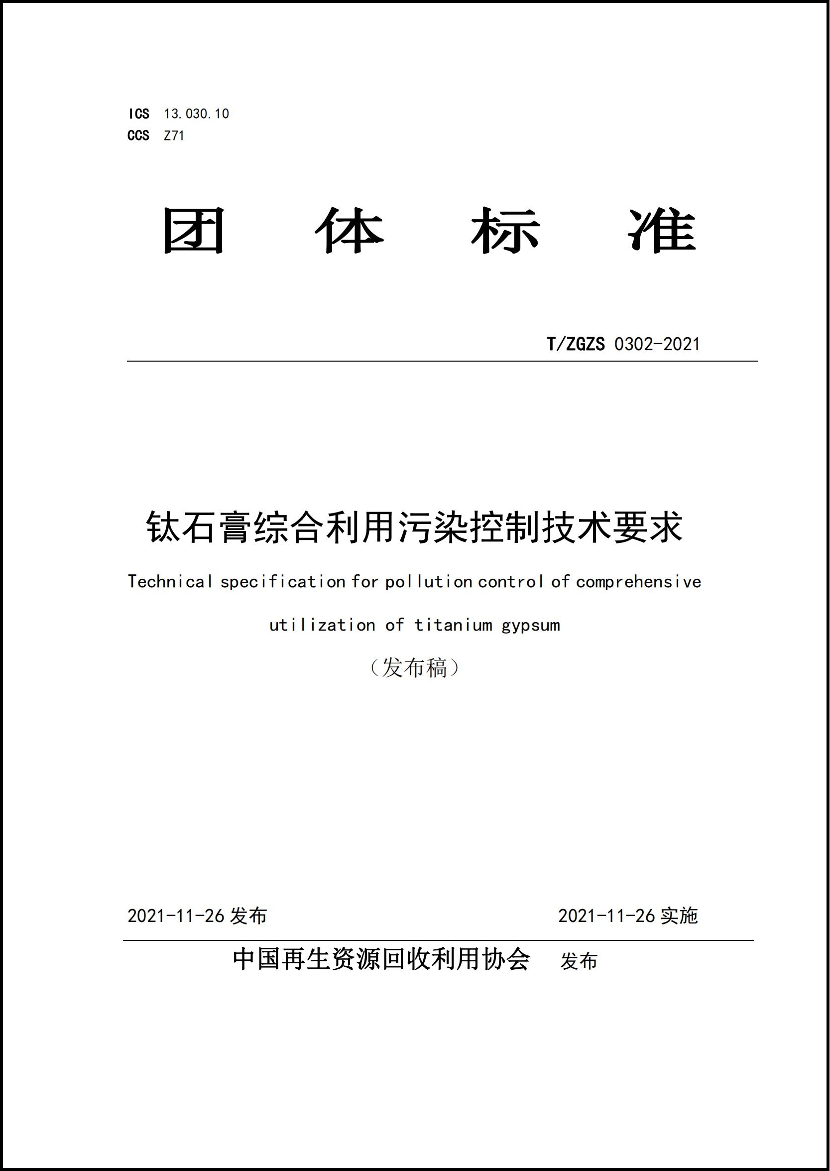 日前,由我院主編的中國再生資源回收利用協(xié)會團體標準T/ZGZS 0302-2021《鈦石膏綜合利用污染控制技術要求》正式發(fā)布實施。