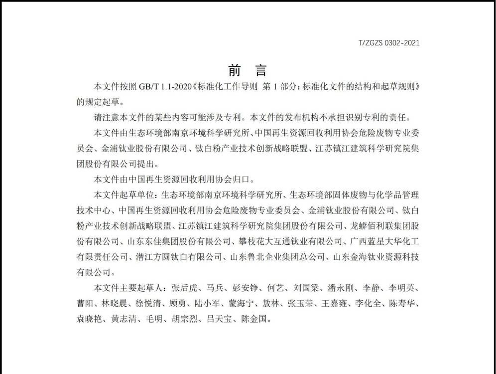 該標準由我院與生態(tài)環(huán)境部南京環(huán)境科學研究所、中國再生資源回收利用協(xié)會危險廢物專業(yè)委員會、金浦鈦業(yè)股份有限公司、鈦白粉產業(yè)技術創(chuàng)新戰(zhàn)略聯(lián)盟等5家單位主編,主要針對鈦白粉行業(yè)副產鈦石膏綜合利用率低、產品附加值低、規(guī);降偷痊F(xiàn)實難題,從鈦石膏綜合利用過程污染物排放技術要求、綜合利用產物有害成分控制技術要求等方面出發(fā)進行設定,為行業(yè)管理部門提供依據(jù),同時,為上游產廢單位和下游資源化利用單位提供技術支撐。