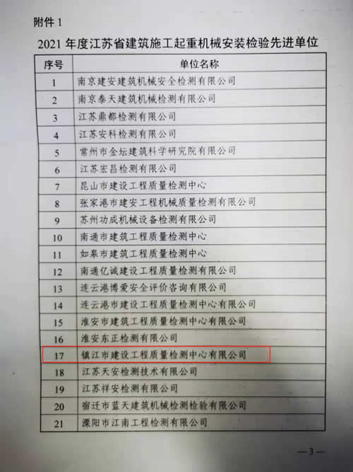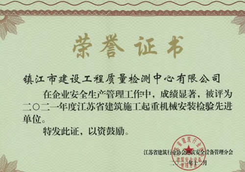 近日,江蘇省建筑行業(yè)協(xié)會建筑安全設備管理分會對省內(nèi)建筑施工起重機械安裝檢驗單位進行了評價,共21家檢驗單位被評為“2021年度江蘇省建筑施工起重機械安裝檢驗先進單位”,我中心憑借優(yōu)質(zhì)的服務質(zhì)量再次獲得先進單位榮譽稱號。我們相關檢驗人員也將以此次評價獲優(yōu)為契機,不斷提高自身的檢驗能力和素質(zhì),以更高效更優(yōu)質(zhì)的服務回饋我們每一位客戶!