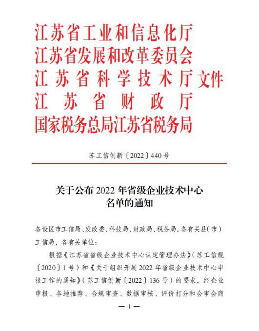 日前,從江蘇省工信廳傳來(lái)喜訊,我院成功獲批“江蘇省企業(yè)技術(shù)中心”。