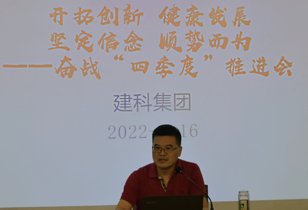 9月16日下午,鎮(zhèn)江建科集團(tuán)在集團(tuán)本部多功能廳召開(kāi)了奮戰(zhàn)“四季度”推進(jìn)會(huì),集團(tuán)黨委書(shū)記、董事長(zhǎng)、院長(zhǎng)伊立作動(dòng)員講話,他指出今天這個(gè)會(huì)議是關(guān)鍵時(shí)期召開(kāi)的推進(jìn)會(huì),既是動(dòng)員會(huì)更是誓師會(huì)。