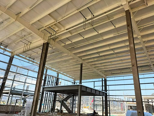 目前,該項(xiàng)目1#—6#倉(cāng)庫(kù)鋼構(gòu)已經(jīng)完成梁柱安裝,正在進(jìn)行屋面板和圍護(hù)結(jié)構(gòu)的施工。項(xiàng)目總監(jiān)對(duì)工程概況、進(jìn)度、質(zhì)量、安全等方面進(jìn)行了簡(jiǎn)要匯報(bào)。董事長(zhǎng)提出以下要求: