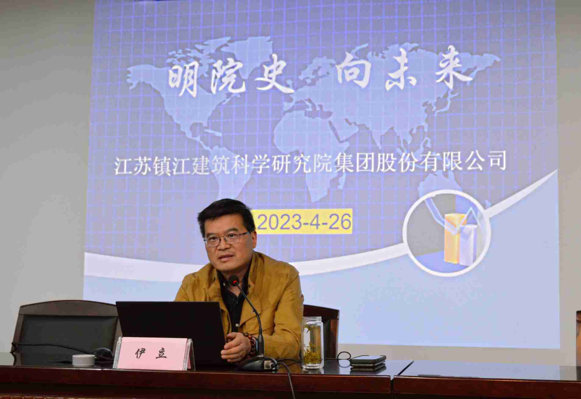 參觀結(jié)束后,建科集團(tuán)黨委書記、董事長(zhǎng)伊立在報(bào)告廳向全體團(tuán)員講述了建科集團(tuán)的院史。他從院徽的寓意為切入點(diǎn),董事長(zhǎng)分享了集團(tuán)成立以來(lái)的成長(zhǎng)歷程、困難挫折、取得的成績(jī)以及對(duì)未來(lái)的美好期許。