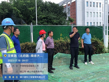 2023年7月18日上午,鎮(zhèn)江市政府副市長黃春年帶領(lǐng)潤州區(qū)政府、市住建局、市城管局、市干道辦領(lǐng)導(dǎo)到正在建設(shè)中的莊泉路(北府路-南徐大道)現(xiàn)場(chǎng)實(shí)地調(diào)研道路工程建設(shè)工作,項(xiàng)目監(jiān)理部成員全程參加現(xiàn)場(chǎng)調(diào)研活動(dòng)。