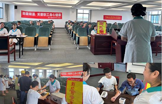 近日持續(xù)高溫,生產(chǎn)一線員工揮汗如雨,為了員工身心健康,2023年8月8日,建科科技黨支部開展“防暑降溫,關(guān)愛職工身心健康”為主題的黨日活動(dòng)。此次活動(dòng)邀請(qǐng)鎮(zhèn)江吉祥大藥房工作人員現(xiàn)場(chǎng)為職工講解防暑降溫的注意事項(xiàng),并針對(duì)公司生產(chǎn)場(chǎng)所和特殊工種詳細(xì)講解防暑降溫的具體措施,以及應(yīng)急救援的方式方法;顒(dòng)中,藥房工作人員免費(fèi)為職工測(cè)量血壓、血糖、骨質(zhì)密度以及幽門螺旋桿菌等項(xiàng)目。