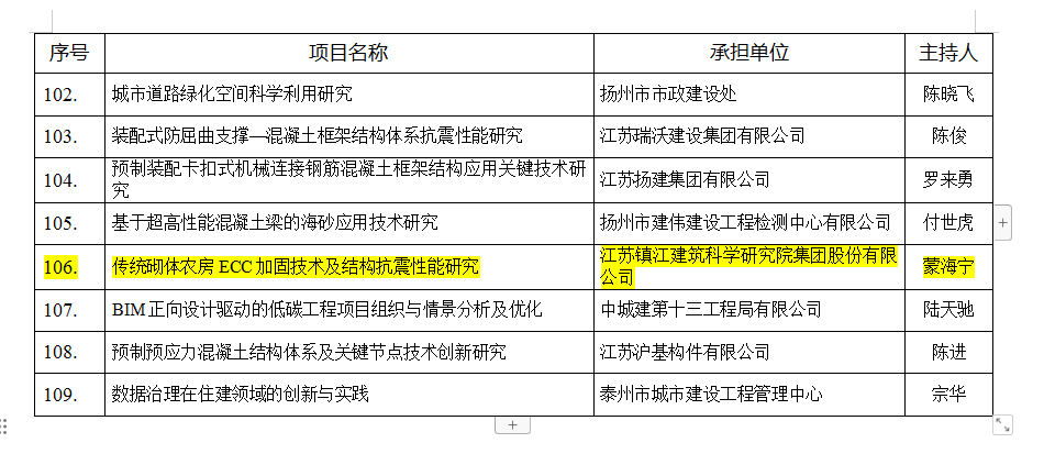 日前,江蘇省住建廳發(fā)布了《省住房城鄉(xiāng)建設(shè)廳關(guān)于2023年度江蘇省建設(shè)系統(tǒng)科技項目和工程建設(shè)標(biāo)準(zhǔn)立項(第二批)的公示》,由我院牽頭,科技公司、結(jié)構(gòu)新技術(shù)為技術(shù)支撐申報的科研項目“傳統(tǒng)砌體農(nóng)房ECC加固技術(shù)及結(jié)構(gòu)抗震性能研究”成功獲批2023年度江蘇省建設(shè)系統(tǒng)科技項目。