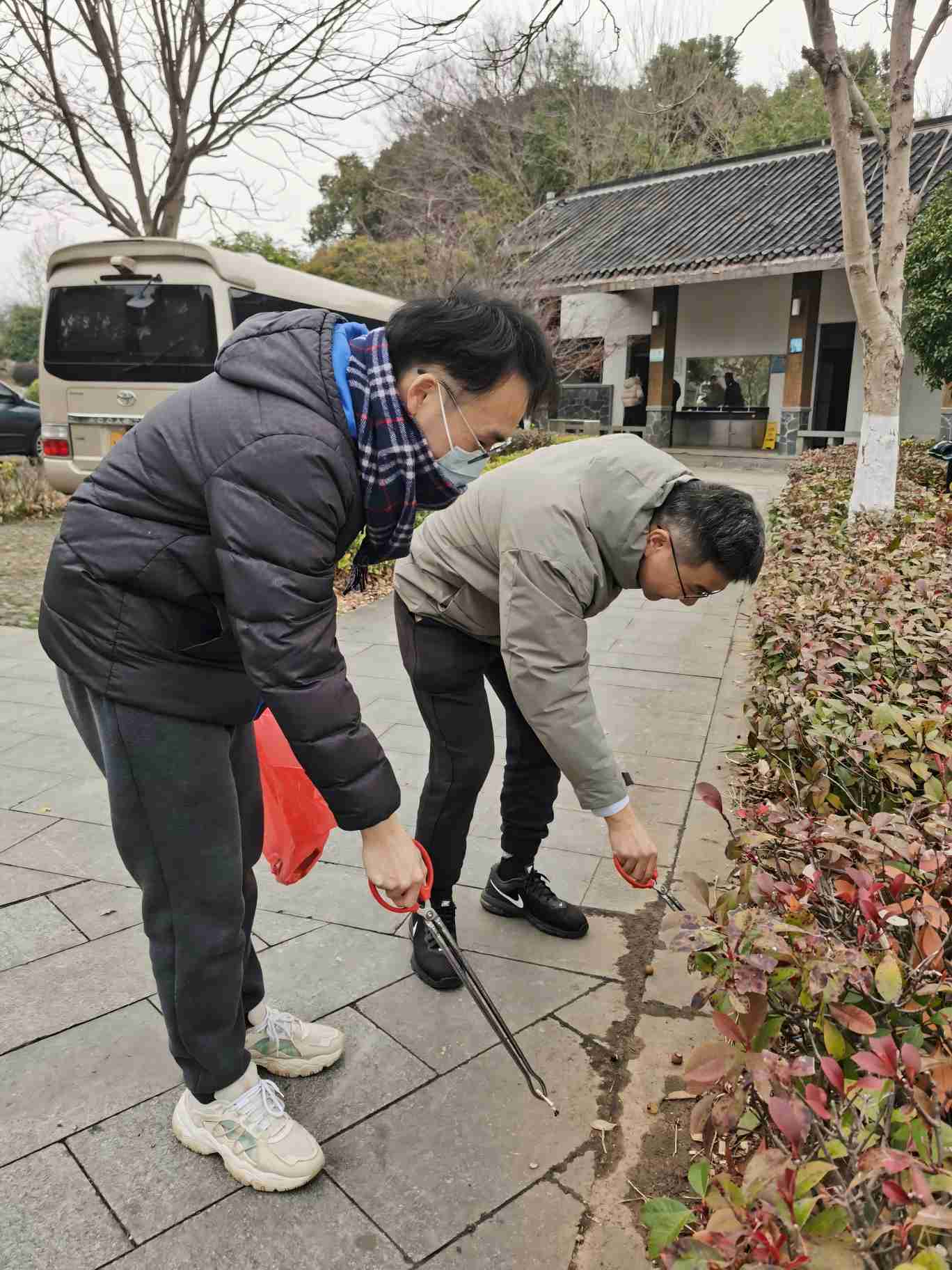15時30分,黨員志愿者展開行動:以“三人成組、百米包干”模式,對南山風景區(qū)周邊2.5公里路段實施精細化清理。運用垃圾鉗、分類袋等工具,重點清除灌木叢隱蔽垃圾、煙頭、塑料制品等污染物。寒風裹挾著早春的濕冷,卻吹不散黨員志愿者們的似火熱情。21名佩戴黨徽的黨員同志們彎腰俯身的身影,與游客們驚喜的目光、環(huán)衛(wèi)工人的點贊交織成一曲生動的春日協(xié)奏曲。